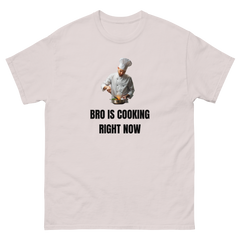 This is a minimalist graphic tee, a slang quote shirt, and a conversation starter for people who enjoy viral phrases, literal humour, chef imagery, and clothing that insists on explaining what is happening.
